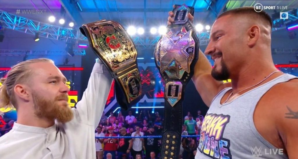 NXT & NXT UK Tag Team Unification Championship: The battle between NXT and NXT UK will be great this afternoon and we will start with the unification match for the NXT & NXT UK tag titles between Creed Brothers (NXT Tag Champs), Brooks & Jensen (NXT UK Tag Champs), Pretty Deadly and Gallus in a 4-way elimination match. All four teams have history with these titles and can be solid choices to win but I will go with the Creed Brothers to be the unified champions and continue their rise as a top tag team.