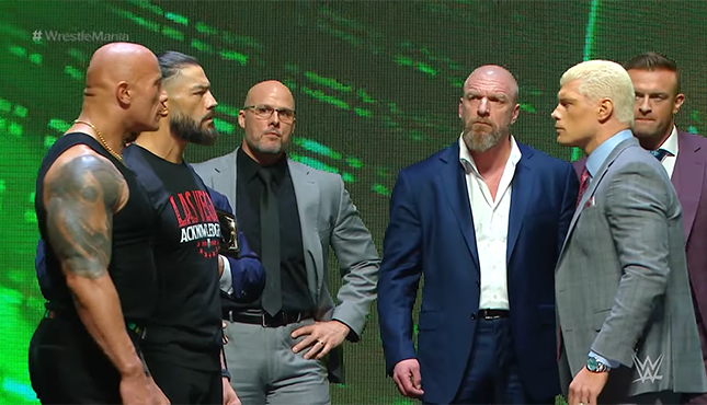But Rhodes said that the ancestors of the Bloodline would be ashamed of their behavior, the Rock stepped up took offense to Rhodes slapping him starting a small skirmish that led to a backstage confrontation with Triple H setting up the road to Wrestlemania officially.