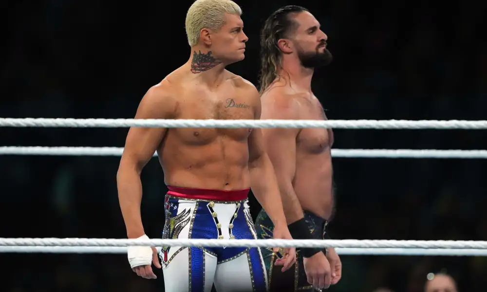 Then came 1 of the 2 big main events this weekend the big tag team match where Cody Rhodes and Seth Rollins were against the bloodline consisting of Roman Reigns and The Rock. The entrances were amazing it was a big match that had incredible big fight energy before the bell.