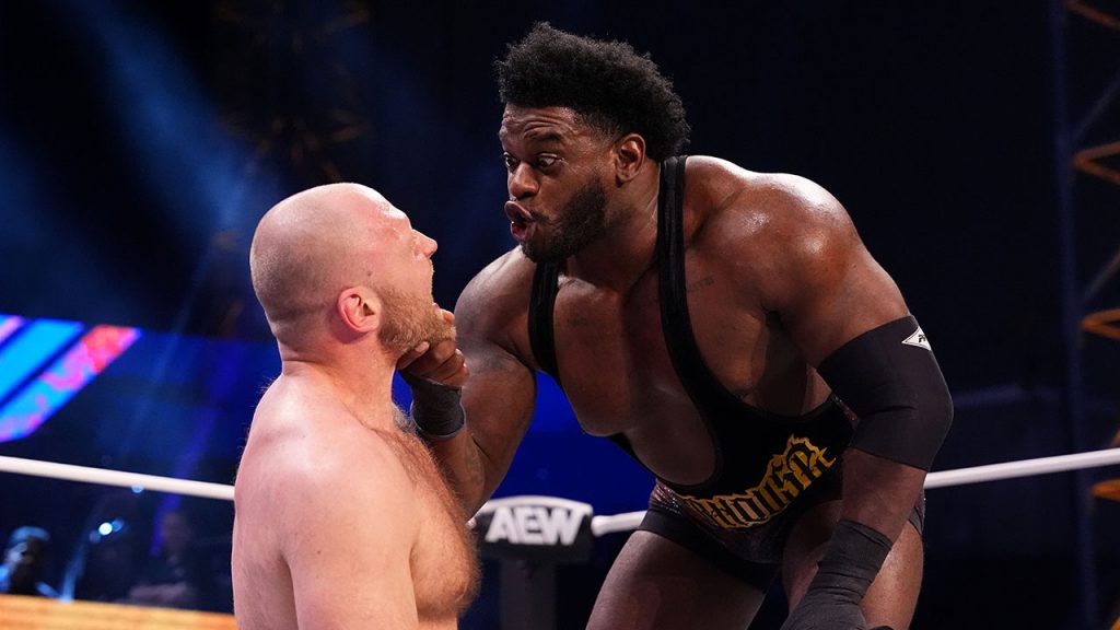 Right away I am a fan of AEW being a Daly’s place in Jacksonville it just works. Instead of big arenas or mid-size venues just go back and do Dynamite in Daly’s until business picks back up. Swerve Strickland opening the show with no real big celebration was another misfire for me, the match with Kyle Fletcher was ok but Swerve with the championship just looks right.
