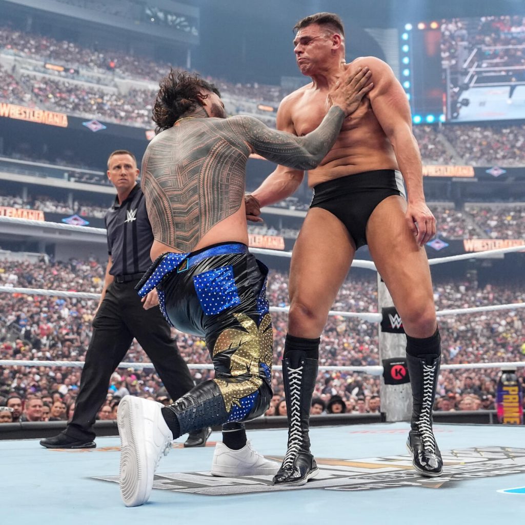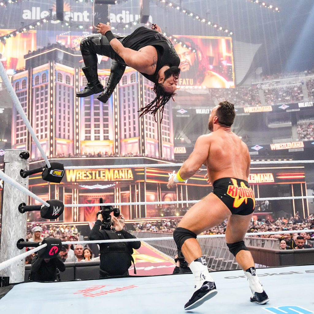 Never say never because Jacob Fatu had a Wrestlemania entrance, and it’s about damn time! Fatu looks to be a regular for future WrestleManias, and LA Knight is bulletproof in my opinion. This match was very good (I guess my dog Finn picked the right match of the night choice), but it also was a showcase for Fatu, who won his first championship, not a bad night for the legendary Samoan dynasty.